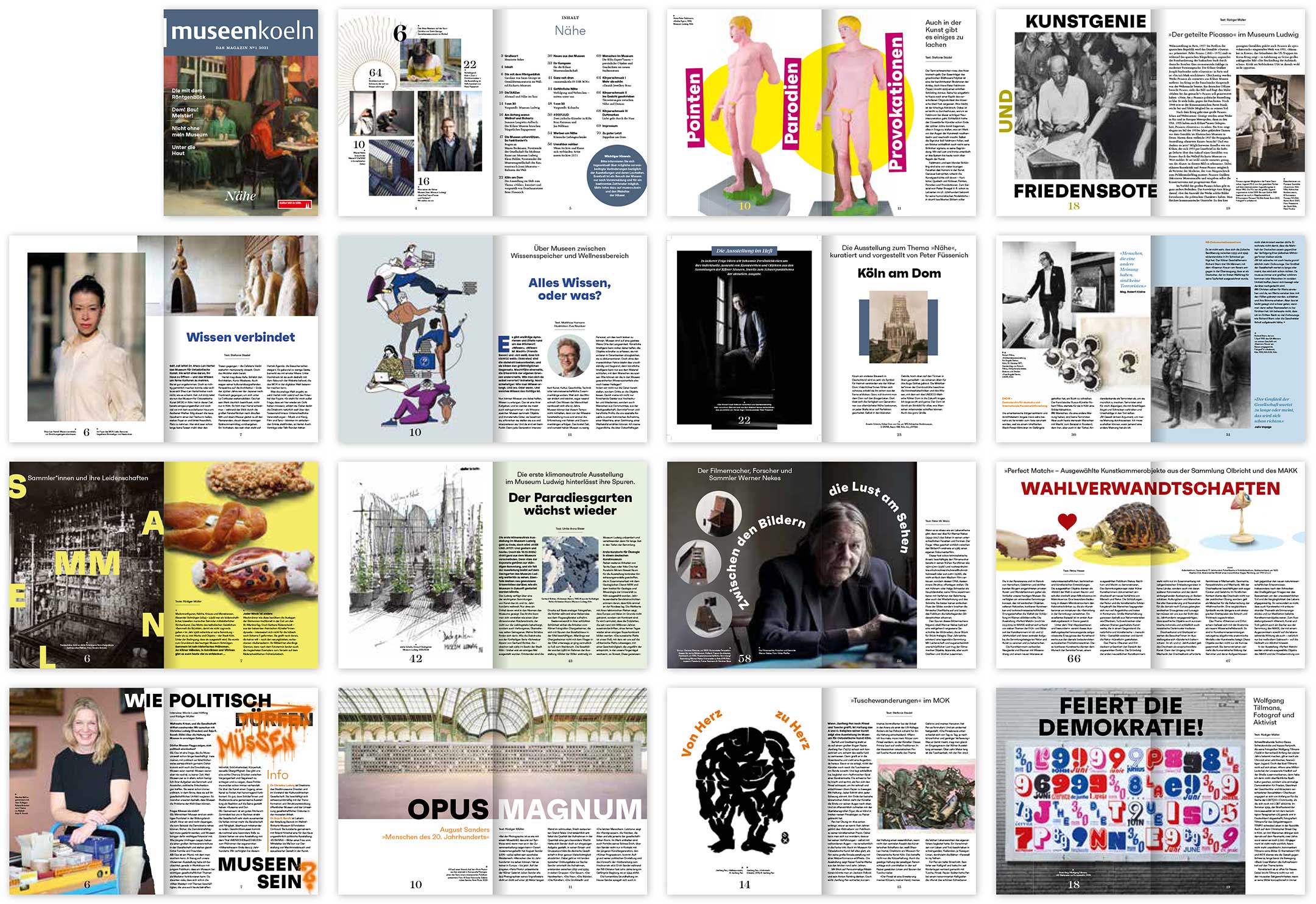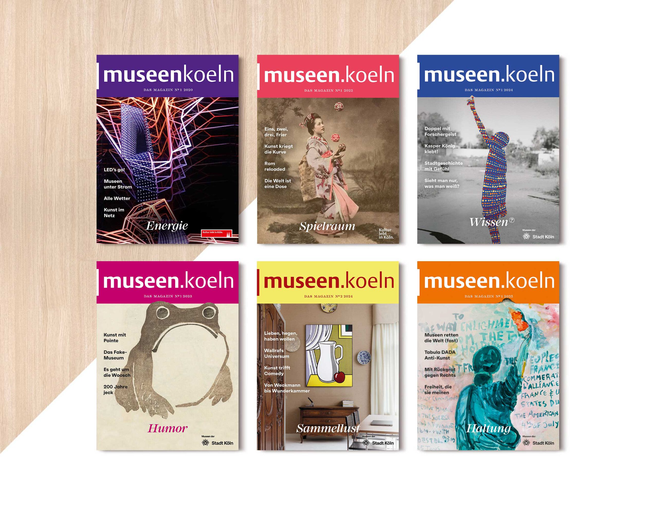 museen.koeln – das Magazin der Kölner Museen erscheint seit sechs Jahren unregelmäßig bis zu dreimal jährlich als Printprodukt. Als niedrigschwelliges Kommunikationsmedium richtet es sich besonders an Menschen, die sich vom vermeintlich »hohen Anspruch« der Museumswelt abgeschreckt fühlen. Ziel ist es, Hemmschwellen abzubauen und Lust auf Museumsbesuche zu machen.
